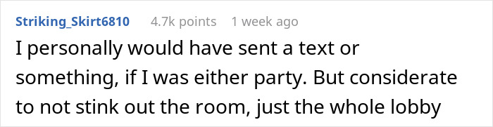 Netizens found the reaction of the OP’s girlfriend exaggerated. They agreed that he acted considerately by not wanting to stink up the room, and several pointed out that she could have easily texted or called if she was concerned. Others also highlighted that her reaction could be a trauma response.
