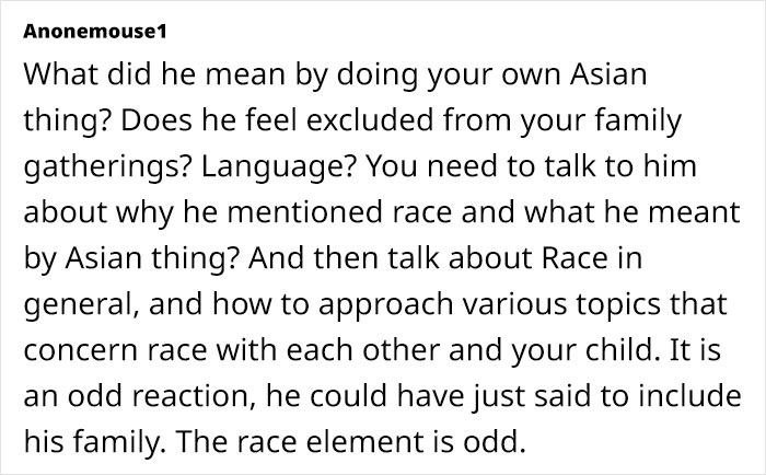 People felt that it was strange for the man to bring up his wife’s race over a simple Christmas event idea, and they urged her to dig deep and find out exactly why he felt like that