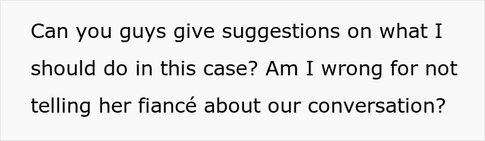 Others saw mental issues in the woman, considering her past problems with commitment and drastic decision-making, i.e. how she’d leave her fiancé for someone else. If anything, they thought it wasn’t right to ask what she did of OP.