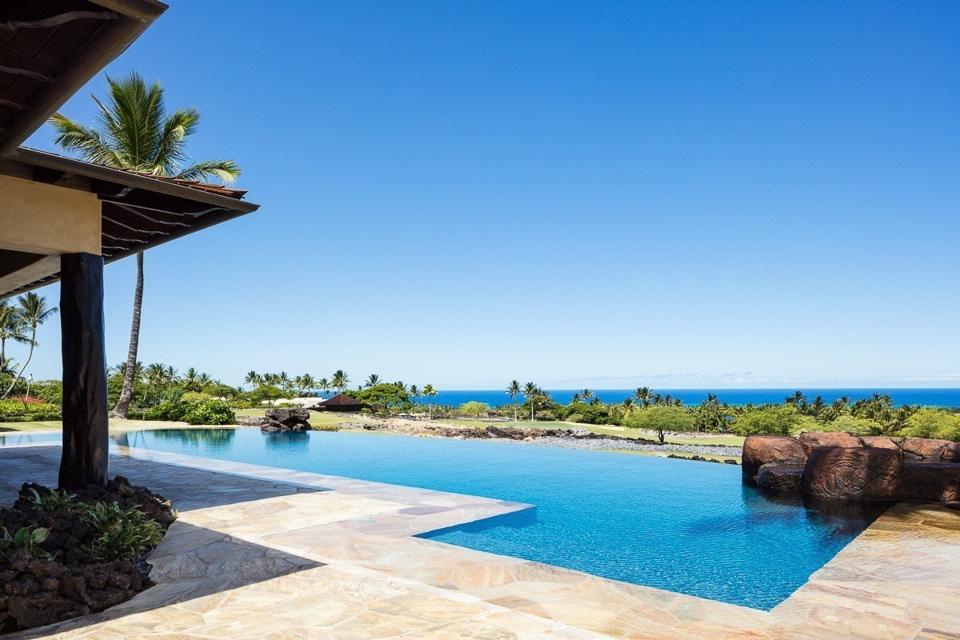 Panoramic views are centered on the ocean as well as two holes at the member-only, Tom Weiskopf-designed Ke'olu Golf Course and three holes of the Jack Nicklaus-signature Hualalai Golf Course,