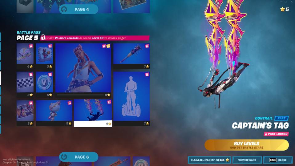Page 5 – Kiara returns with a KO variant, showing we are circling back to a few different older skins. This page has a pretty fun Segway traversal emote you can grab as well. I really like Kiara’s graffiti trail as well.