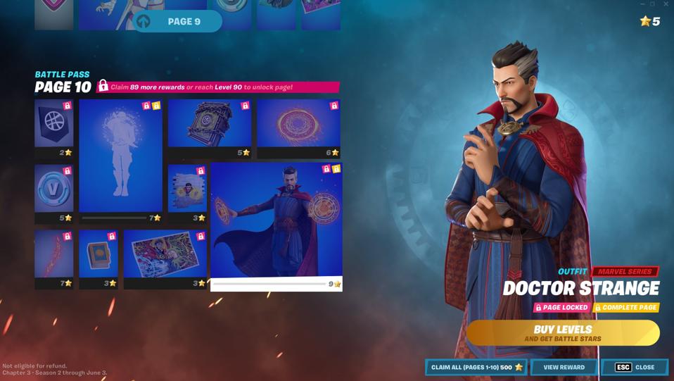 So, what’s in that battle pass that you can buy for a good cause? A lot of different stuff, including some of the better original skins I’ve seen them do In some time. Oh and of course, Doctor Strange. He’s hard to miss.