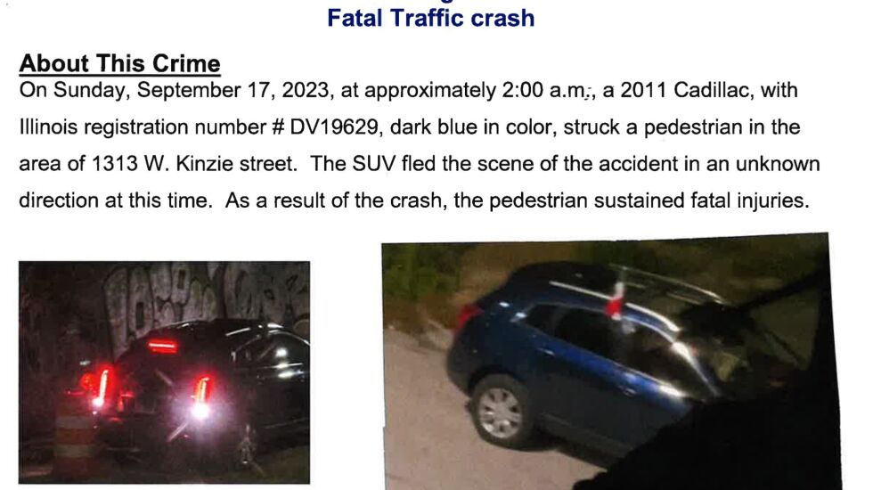 Police are asking the public for help in finding the driver of a dark blue Cadillac involved in a fatal hit-and-run in the city’s Near West Side early Sunday morning, police said.