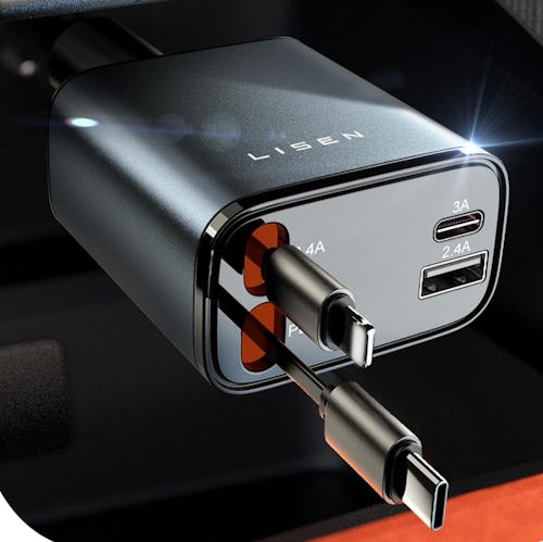 This 4-in-1 car charger rotates 180 degrees to fit snugly in tight spaces — from truck cabins to compact sedans. The retractable cable extends over 2.5 feet, while four charging ports (including fast USB-C) keep multiple devices powered without clutter. It’s shockproof, space-conscious, and compatible with most major phones — basically a glovebox essential for anyone living on the go.