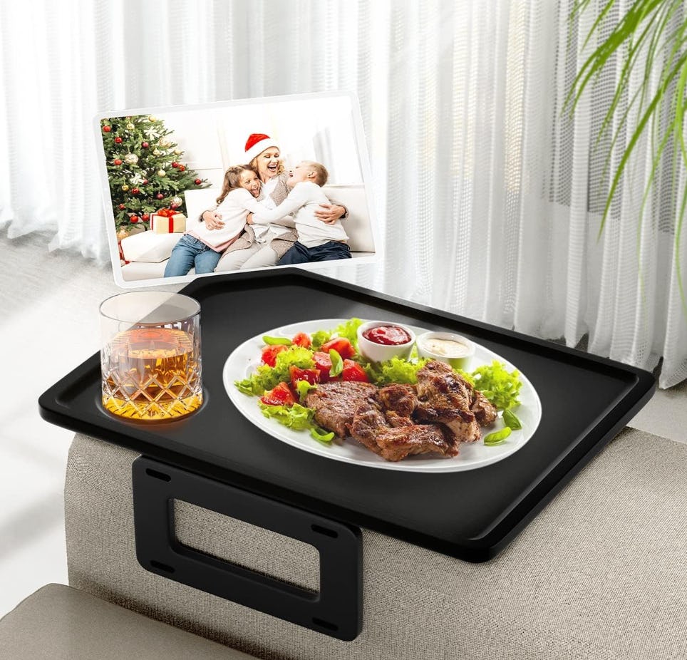 Don’t have enough space in your living room for a coffee table? Then this tray table is a must-have. The clamp on the bottom lets you secure it onto your sofa arm, giving you room to place drinks, plates, remotes, and more. You also have the choice of three oh-so stylish finishes: black, brown, or wood grain.