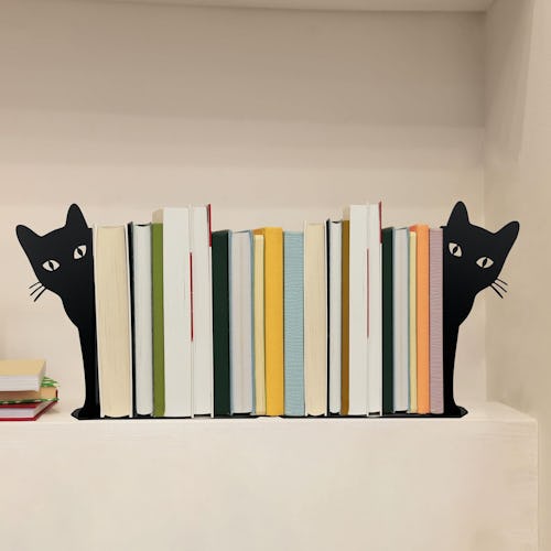 These peeping cat bookends add a playful aesthetic accent to your living space while helping keep your books secure and protected. Made from durable metal with a lacquered finish, each bookend has a nonslip rubber bottom to provide extra stability. One reviewer wrote, “If you like cats, this adds a fun touch to any room. It holds our cook books without any issues.”