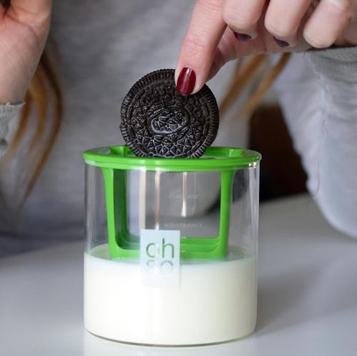 Now you can dip your cookies and keep your fingers dry with this 8-ounce glass and cookie dipper. The glass has markings that help you measure out the perfect dip, while the dipper has grooves that fit perfectly on top. Suspend a cookie securely in the milk until you’re ready to munch.