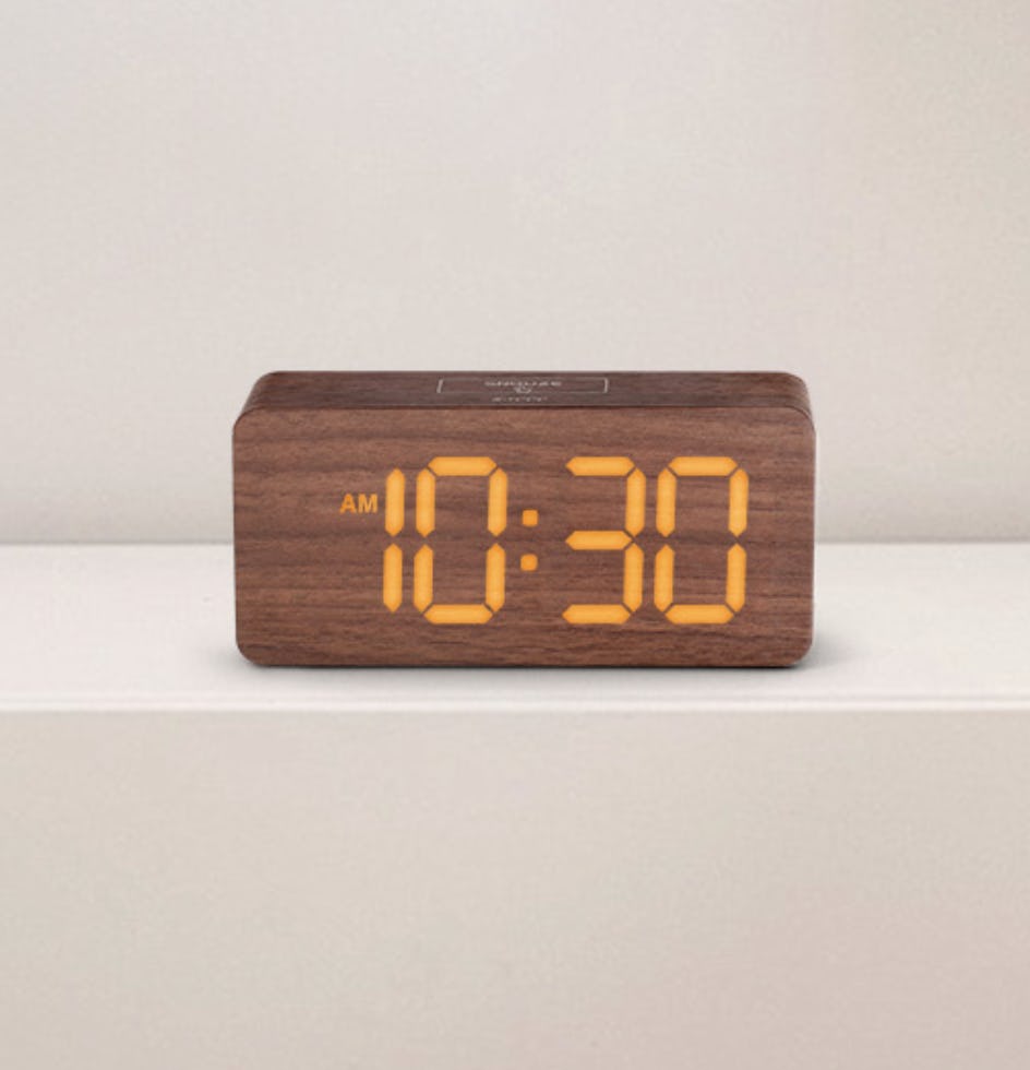 There’s no denying that this alarm clock would look so good sitting on your nightstand. The faux wood finish makes it stand out from the crowd, with the large, easy-to-read face makes it easy to see from across the room. And unlike some clocks, this one can be dimmed so that the face isn’t annoyingly bright when you’re trying to fall asleep.