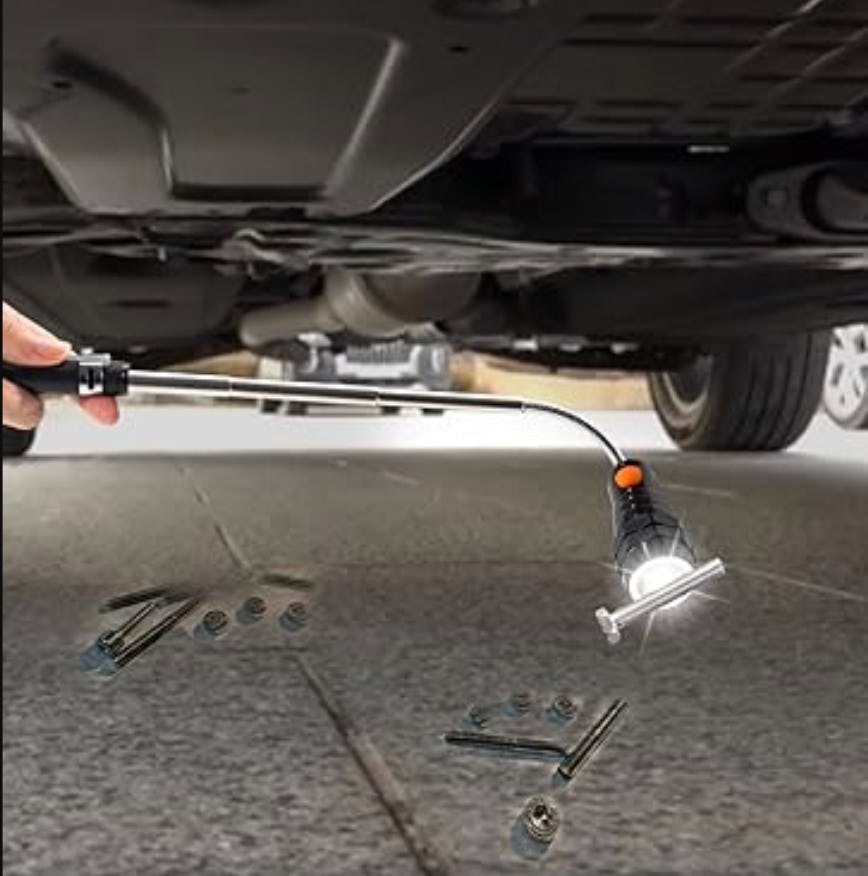 Screws, washers, nails — this pick-up tool is great for retrieving all sorts of small metal things from hard-to-reach places. The telescopic handle extends out to 22 inches, and the magnetic head is so strong that it can support up to 2 pounds. Plus, an LED flashlight built into the head makes it easy to see into dark spaces.
