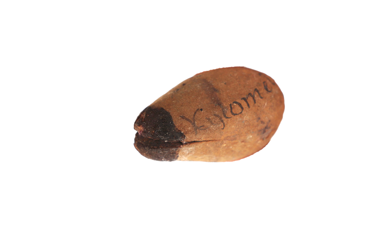 The most interesting example is a complete woody pear, the seed pod of a shrub native to Australia’s east coast. Someone at Hyde Park Barracks carefully collected this specimen and labelled it with the botanical name Xylomelum pyriforme, revealing an interest in Australian botany.