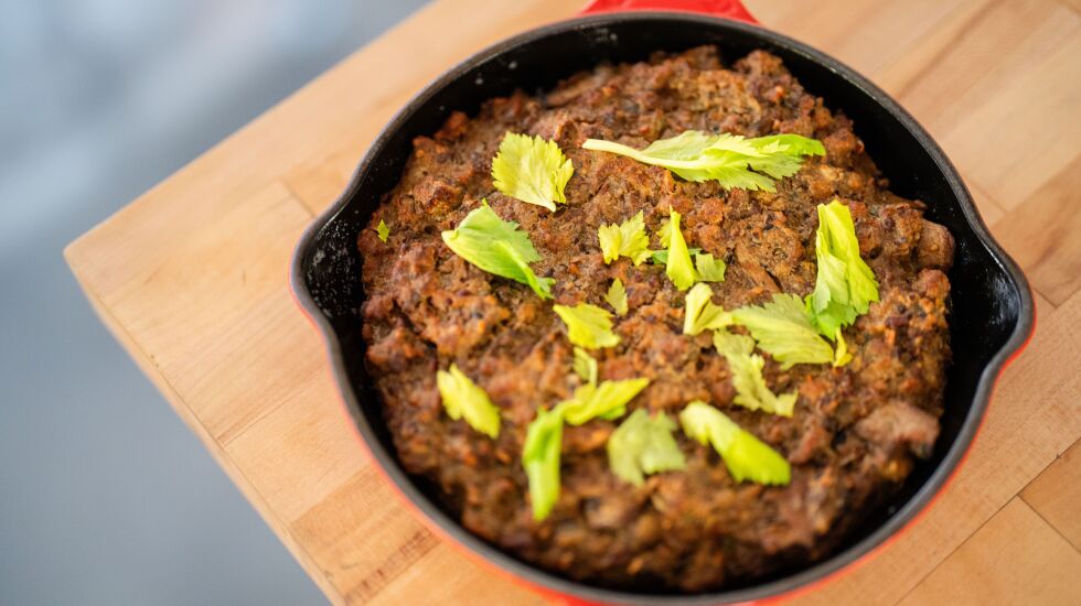“If you have your heart set on a seafood variation this Thanksgiving, swapping in oysters instead of pork sausage is easy — see the tip below the recipe.” — Chef Brandon Rushing