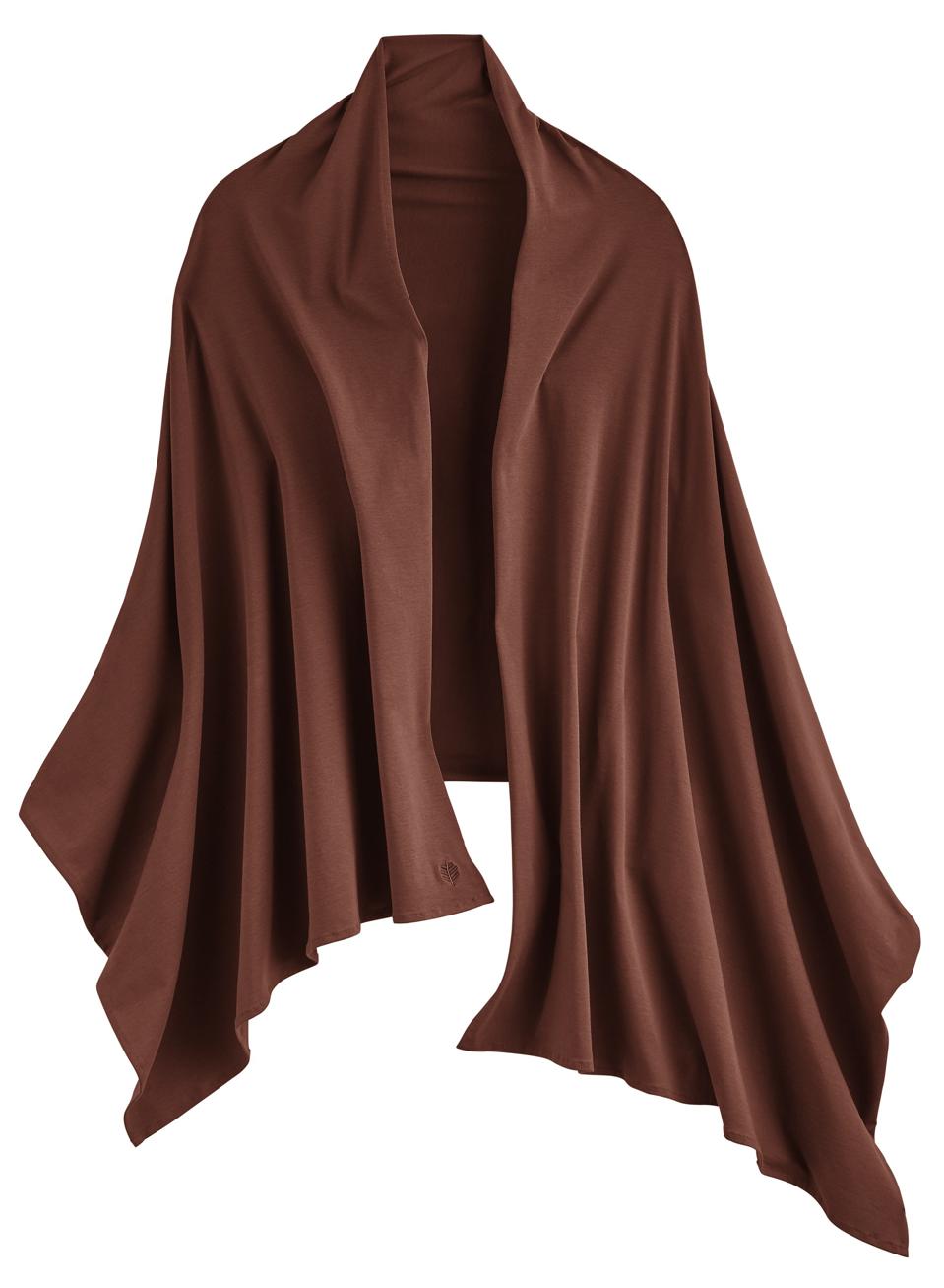 Athleta Pranyaama Wrap: Stylish and sensible, this wrap has deep side pockets and a perfet mid-weight texture for keeping warm on the long haul flights. I tucked my eyeglasses into a pocket and pulled the wrap across my torso. , the wide banded neck line and collar easily roll up to cover your neck as well. Made from sustainable Tencel Modal and Spandex; easy machine wash and dry. $89
