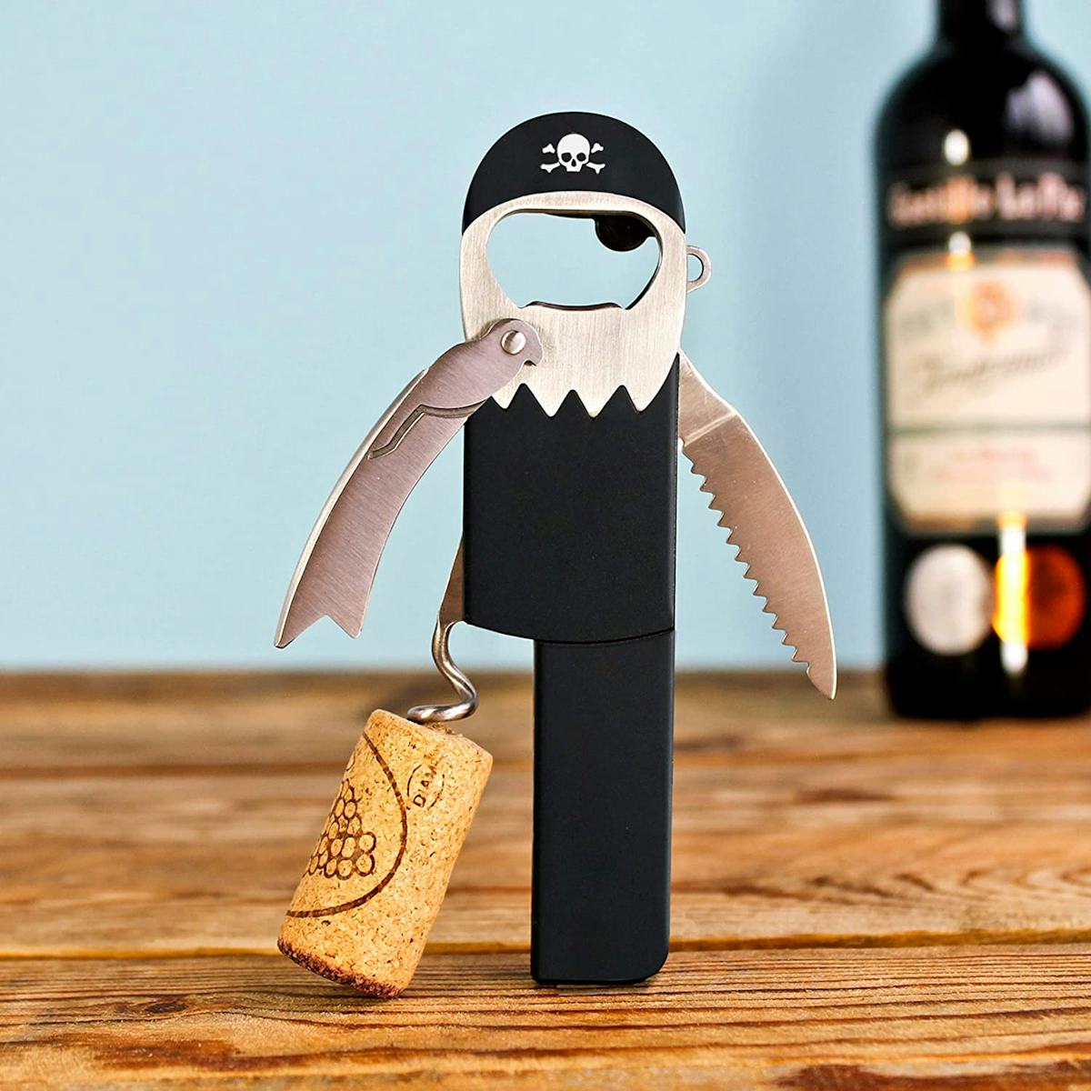 One reviewer wrote: “I honestly love this little guy. I've always been a fan of pirates so when I saw this combination corkscrew it was pretty much a no-brainer. It looks even better in person than it does on the photos, with the black 'body' having a nice matte finish and quality stainless steel composing the rest. I get compliments on it all the time when I throw parties or have guests over!” — Matthew Parks