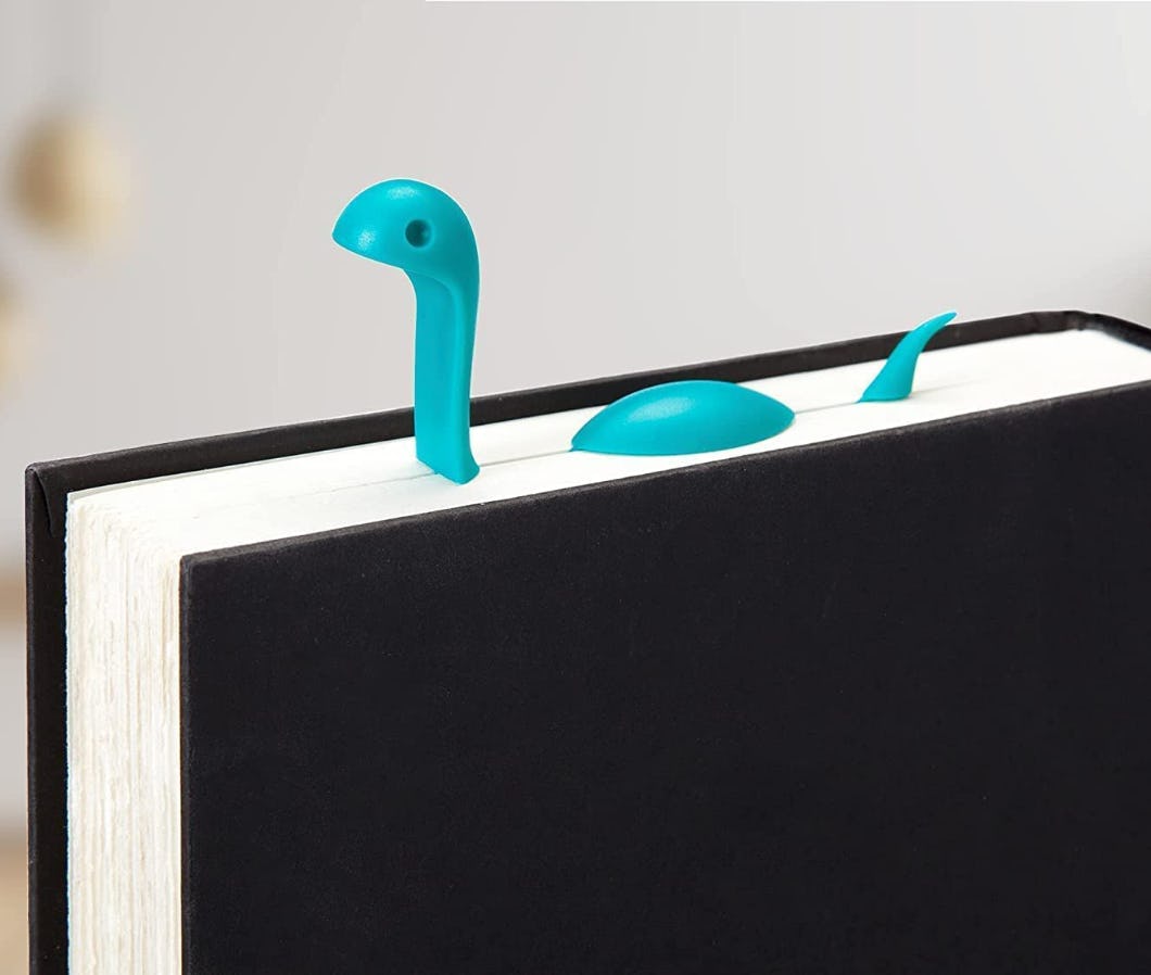 Well, here’s a bookmark that will bring you (and your kids) an immense amount of joy while encouraging reading. Made from lightweight turquoise plastic, this little Nessie Tale page-keeper peeks out from the top of the book. It’s designed to fit between pages without slipping.