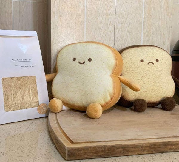 Check out this adorable plush bread pillow that looks like it popped right out of a cartoon breakfast. It’s racked up 4.6 out of five stars overall, and it’s shaped like a thick slice of golden-brown toast, complete with details and a squishy loaf-like body. You can choose from different styles of bread in different emotions.