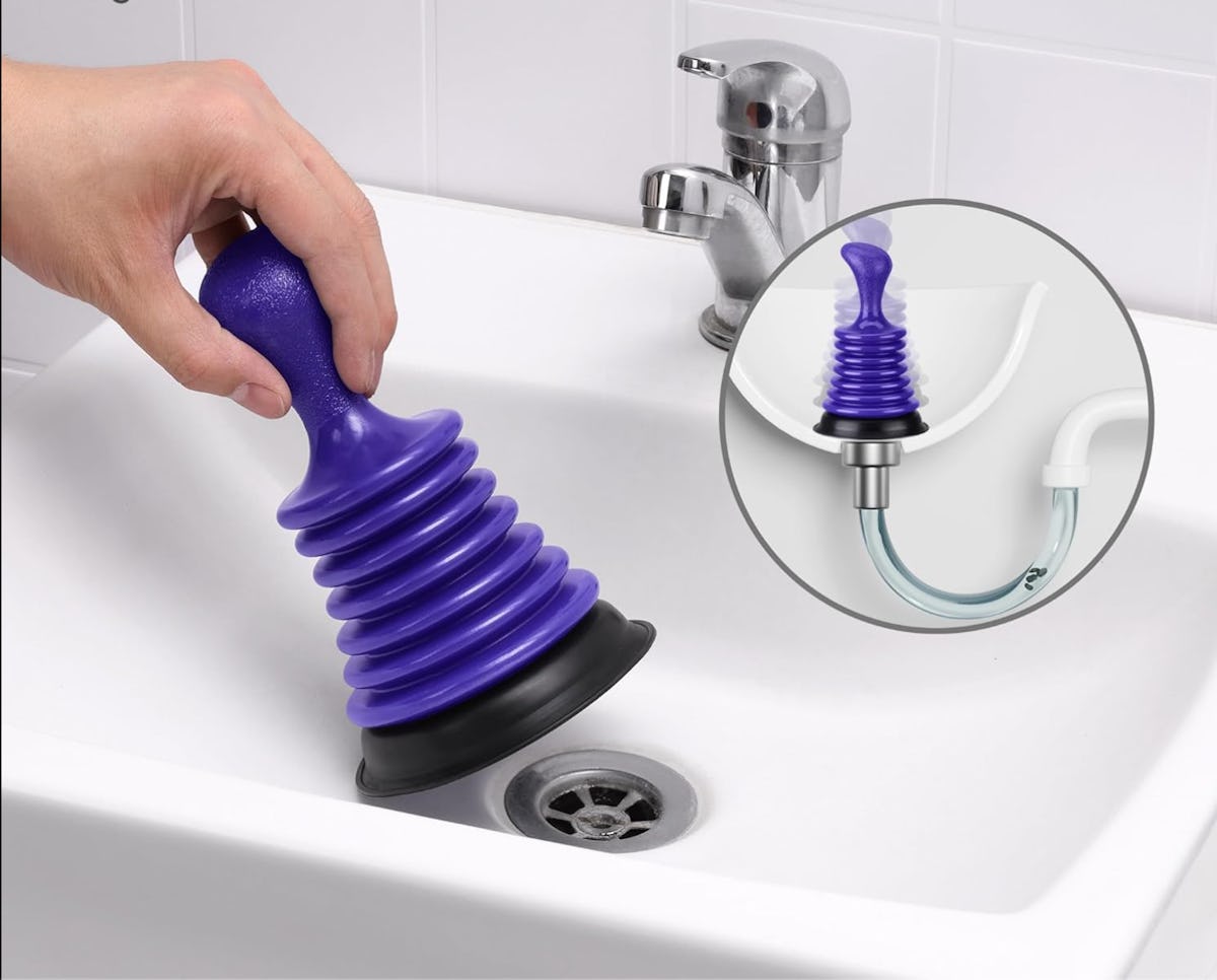 One reviewer wrote: “Best for sink issues, and works every time. The size is perfect for your sink drain, easy to hold, and the suction is incredible!” — Maxine Rother