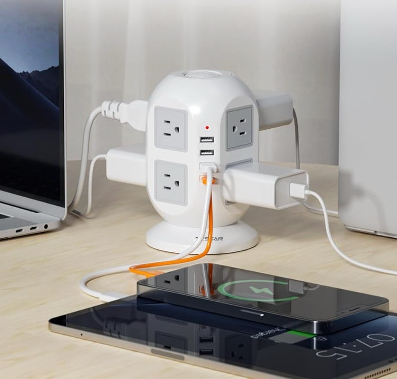 If you juggle multiple devices, check out this clever all-in-one surge protector tower. With eight AC outlets and four USB ports, including a USB-C, it lets you plug in anything and everything. The 10-foot flat extension cord makes placement flexible, and there’s also a 15-foot option if you need even more length. Its vertical design helps organize cords without cluttering the floor.