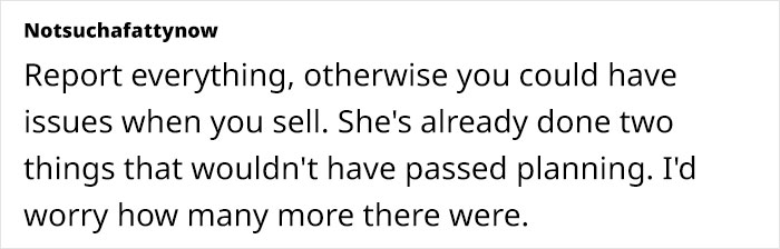 The only worry the woman had was that reporting her neighbor to the planning officer might cause problems because of the extra, unreported construction work the lady had done