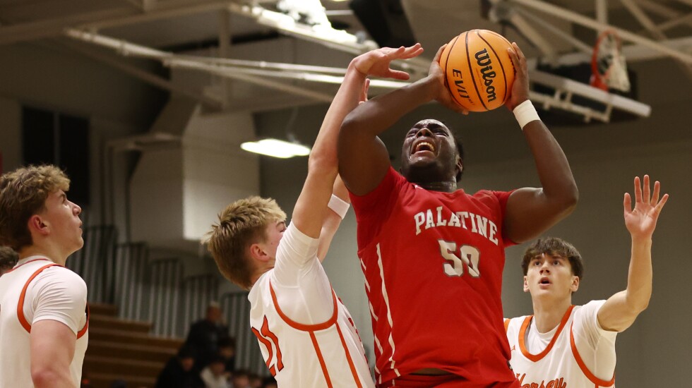 Palatine senior Tony Balanganayi scored nine points in the fourth quarter. The star football player was unstoppable in the post, and his domination gave the Pirates a five-point lead with just a minute and a half to play. It appeared Palatine was on its way to a major road win in the new, supercharged Mid-Suburban League West.