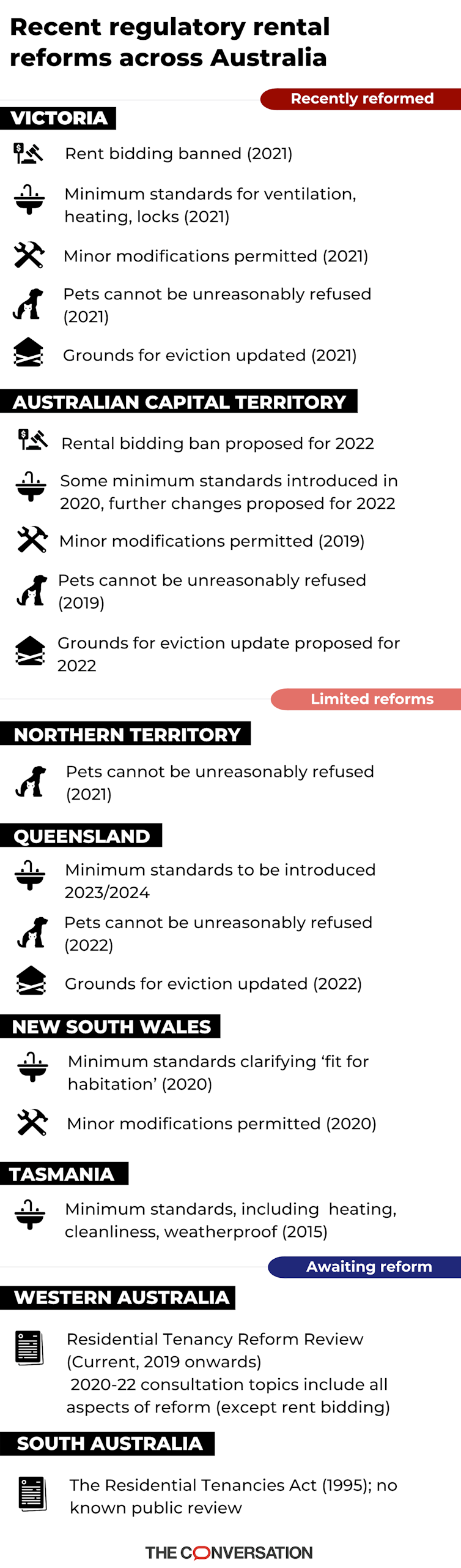 These trends are reshaping expectations of private rental housing. Residential tenancy reforms that are rolling out around the nation – albeit in slightly variable ways – are an important part of this national change.