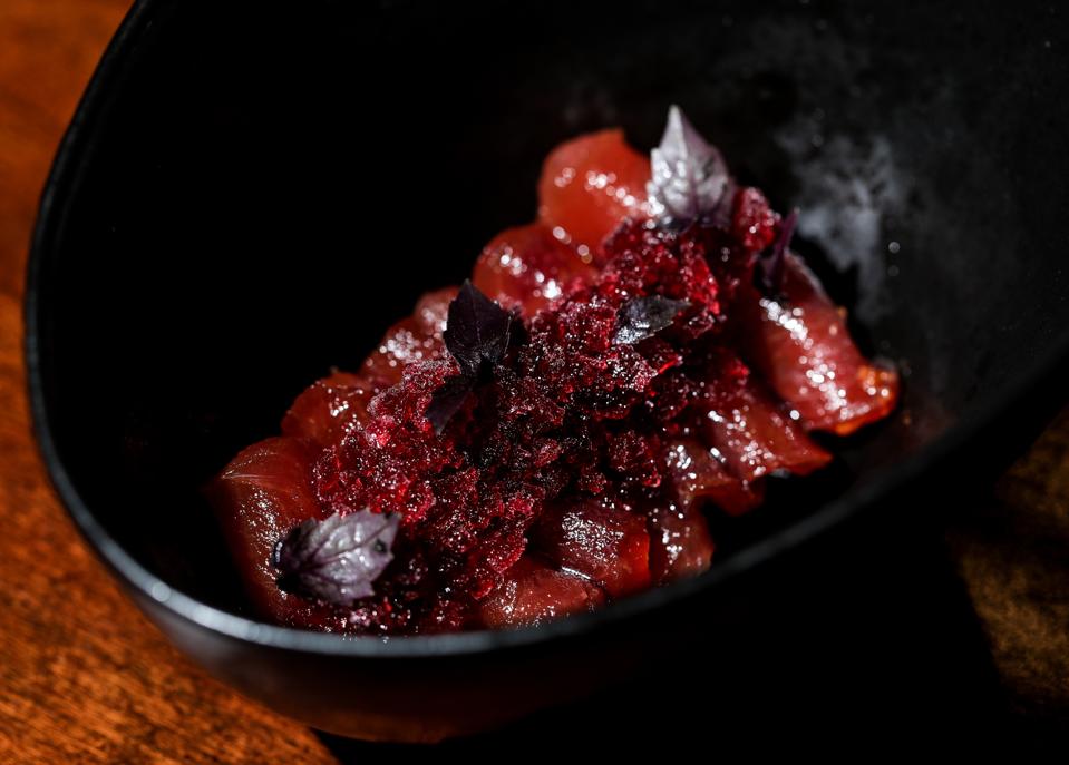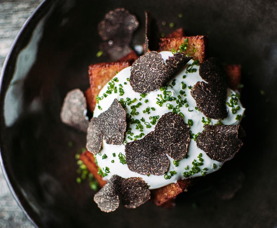 Additionally, the kitchen infuses whimsical indulgence into the Garrison experience, taking familiar elements and elevating them with unexpected technique or flavors. The signature tater tots with aerated Gruyère cheese and black truffle, or the tuna crudo with fermented huckleberry granita are good examples of this philosophy.