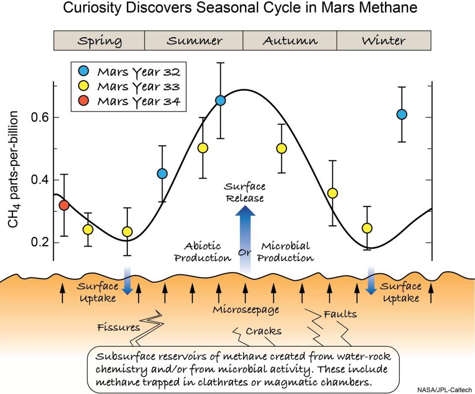 It remains a fascinating and open question — perhaps the most interesting question we can ask about life beyond Earth in the Solar System — whether life ever existed on Mars. Although it’s a highly speculative proposition, it’s one that we have the potential to answer: not just down the road, but in the very near future. The combination of orbiters, landers, and rovers we have, both today and upcoming in the near-future mission timeline, will shed light on the presence and concentration of various biomarkers in the atmosphere, on Mars’s surface, and just beneath its surface. If the seasonal methane has a biological origin rather than a geochemical one, we should be able to know within a single decade.