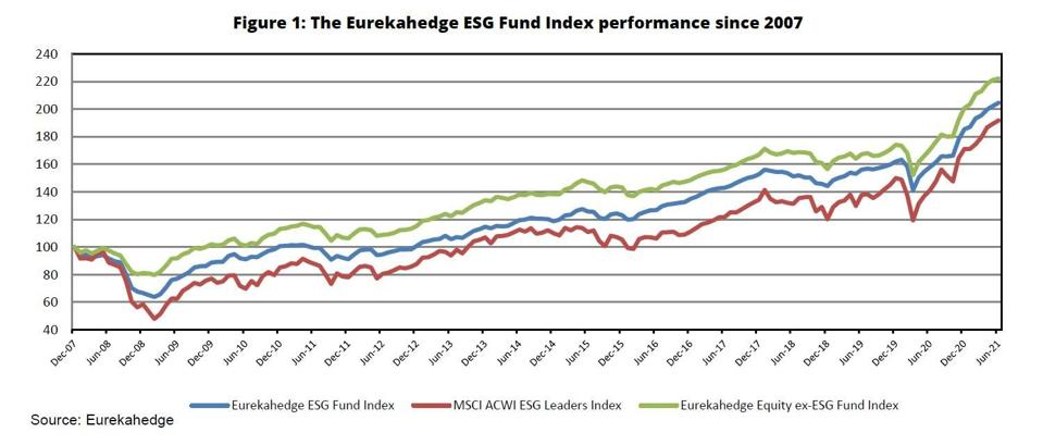 However, looking back to 2007, non-ESG hedge funds stayed ahead of ESG funds, which outperformed the benchmark. Eurekahedge said the ESG fund managers it tracks generated an annualized return of 5.44% since 2007, compared to the MSCI ACWI ESG Leaders Index, which returned 4.94% per annum. Non-ESG funds using the long/ short equity strategy returned 6.09% per annum since 2007.