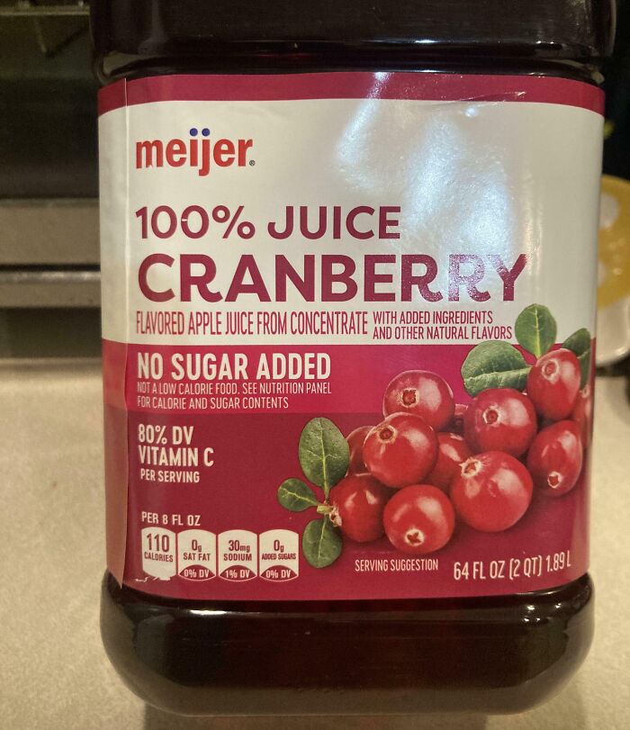 I wanted 100% cranberry juice so I bought this juice labeled “100% JUICE CRANBERRY”, only to get home, pour myself a glass, and notice the next line on the label, in much, much smaller print.