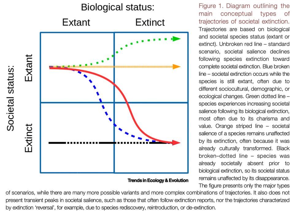 Ivan Jarić, Uri Roll, Marino Bonaiuto, Barry W. Brook, Franck Courchamp, Josh A. Firth, Kevin J. Gaston, Tina Heger, Jonathan M. Jeschke, Richard J. Ladle, Yves Meinard, David L. Roberts, Kate Sherren, Masashi Soga, Andrea Soriano-Redondo, Diogo Veríssimo, and Ricardo A. Correia (2022). Societal extinction of species, Trends in Ecology and Evolution | doi:10.1016/j.tree.2021.12.011