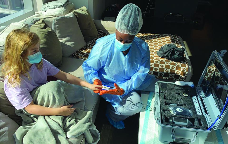 Their OCCs are also trained phlebotomists who can draw blood for labs. They arrive at the patient's home and handle all the technology, bring the doctor up on screen, and facilitate a full work-up by the doctor in real time. For the physician, this is just like walking into an exam room in their own practice, except everything is virtual and the physician gets to see the living environment of their patient.