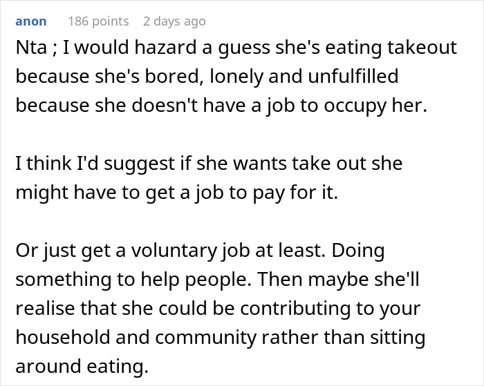 Some readers agreed with the author, as they couldn’t imagine spending this much money on takeout