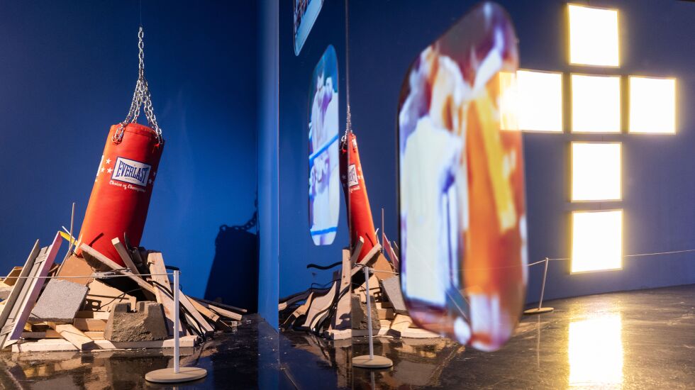 The installation examines how Black fighters are glorified and dehumanized in the media, the artist said.