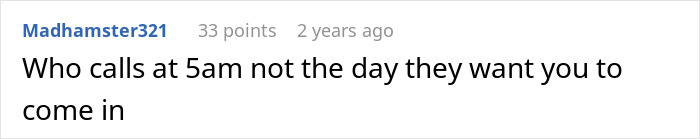 Aside from some people’s unwillingness and inability to listen to reason, the redditor’s story also highlights another important issue. Namely, how some managers are very ineffective leaders, treat their employees poorly, and could use some training in effective communication. Calling your staff at God-awfully early hours is horribly demotivating. Yes, some lines of work mean that people do their jobs at odd hours. But unless you have a written understanding that they can reach out to you so early in the morning, you, as a manager, should wait for a more reasonable time to place that call.