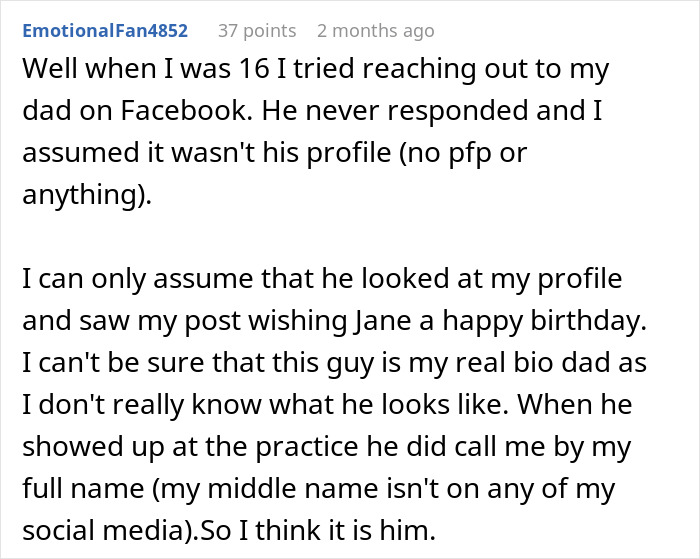 Psychotherapist Amanda Ann Gregory said in a previous interview with Bored Panda that the parent who left should initiate reconnection. That responsibility does not lie with the child. And if an estranged parent shows up on your doorstep, that doesn’t mean that there’s definite reconciliation in the future.
