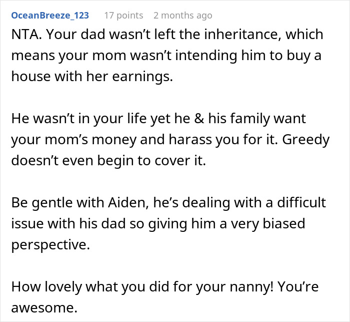 And sometimes, these kids bond with their nannies so much that they might want to thank them for all their hard work once they’re grown up. That’s what this woman had in mind when she decided to gift her former nanny a house. However, her estranged father then decided to show up and demand financial help. Hesitant whether turning him down was the right choice, the woman asked others to weigh in.