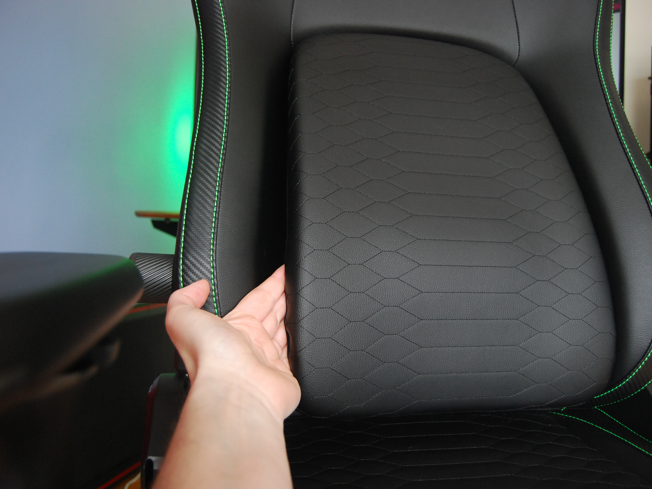 Whereas many chairs have a dial to add or subtract lumbar depth beneath the cover, Razer's solution sees a big portion of the backrest partly separated from the rest of the chair.