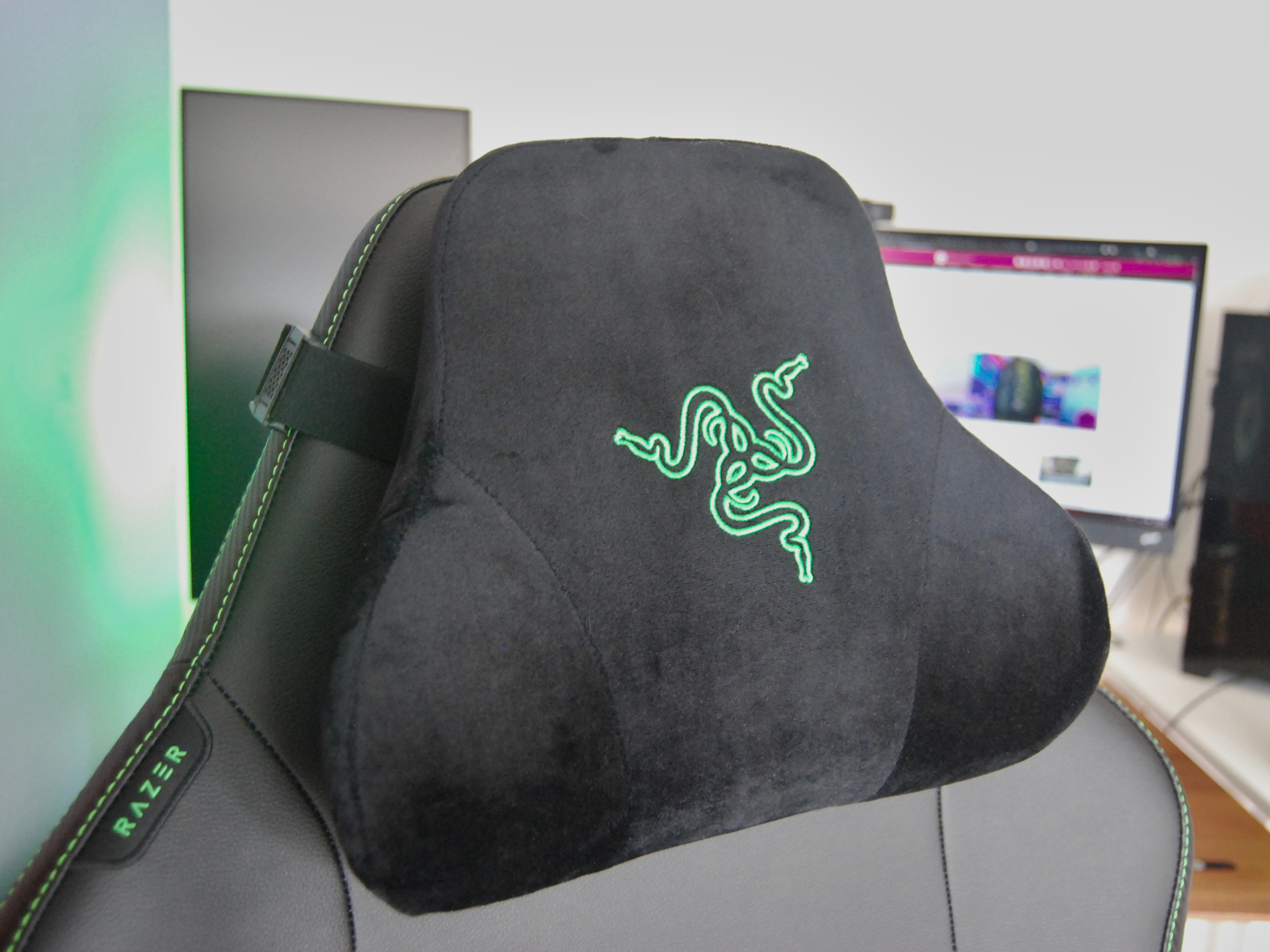 Like many companies making gaming chairs, Razer's headrest solution is nothing more than a pillow that can be attached to the chair with an adjustable elastic strap.