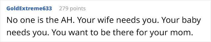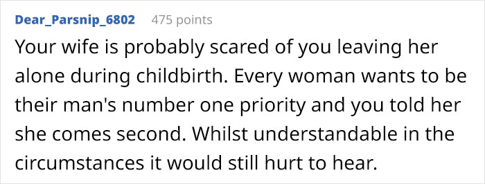 People in the comments also wrote that the original poster definitely faced a very difficult choice, and that asking such a question is fundamentally incorrect. However, a pregnant woman’s fears of childbirth are an absolutely logical excuse. “Your wife needs you. Your baby needs you. You want to be there for your mom,” one of the commenters claimed.