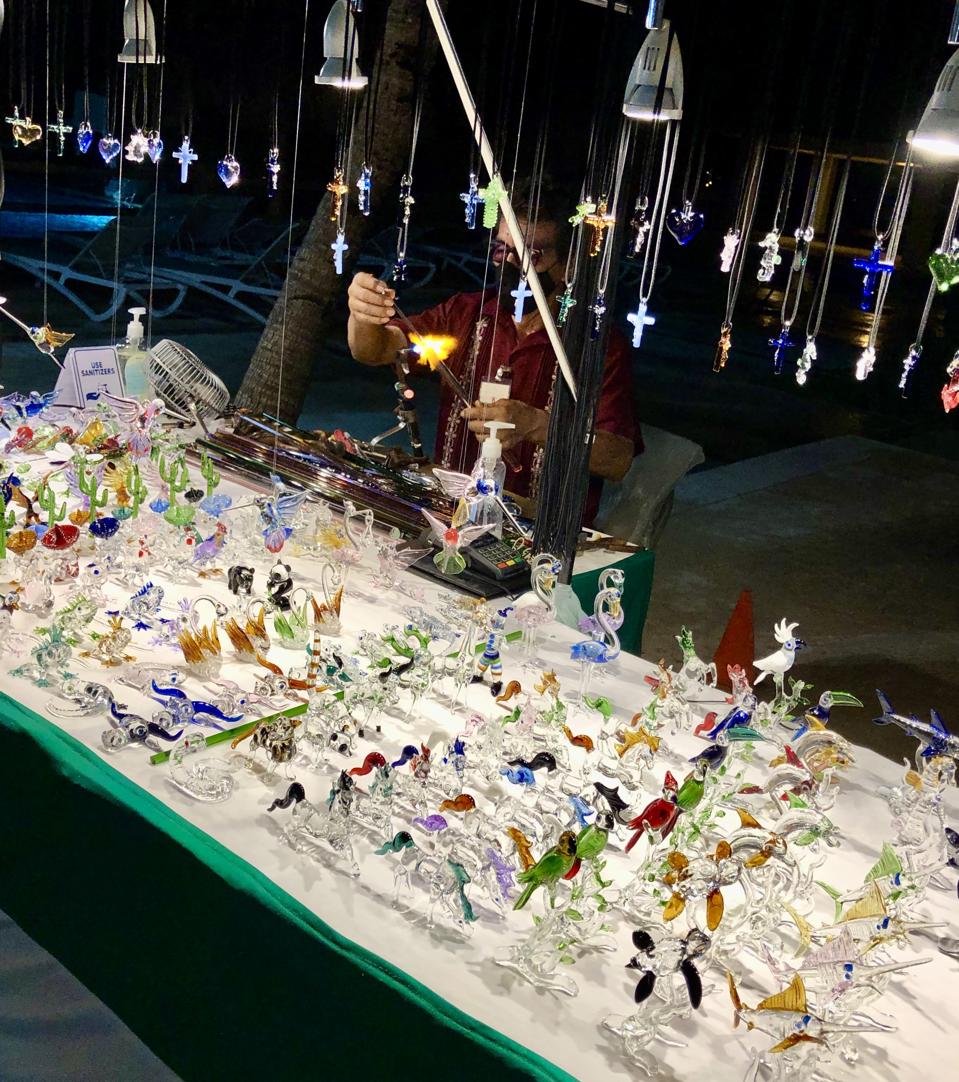 Due to the pandemic, we didn’t leave the resort to explore as much as we normally do. I believe it’s important to support locals when visiting other countries and usually choose to purchase gifts and souvenirs directly from the people creating them. During Mexican Fiesta night at Iberostar there was lively music by the pool and locals set up shop selling stunning glass ornaments, original artwork, jewelry, hats, wooden masks, decorations and authentic souvenirs. It’s a wonderful opportunity to chat with people about their crafts, their lives and support their creations.