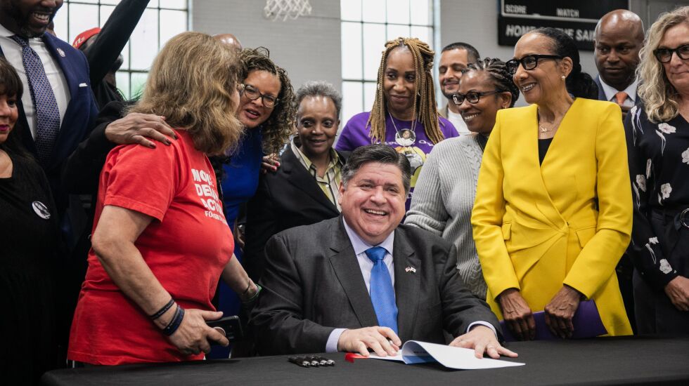 “A child should not be able to build an AR-15 like they’re building a toy truck. A convicted domestic abuser should not be able to evade scrutiny by using a 3D printer to make a gun,” Pritzker said at the bill signing in St. Sabina Church’s gymnasium, surrounded by Mayor Lori Lightfoot, Chicago Police Supt. David Brown and community leaders.