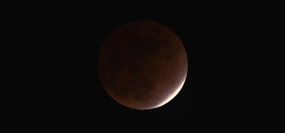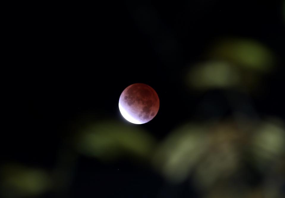The key sight was the Moon glowing a coppery red or burnt orange color, though perhaps with a brownish tinge. The colors of a “Blood Moon” are caused by the Earth’s atmosphere, which sent some scattered and bent sunlight onto the lunar surface.