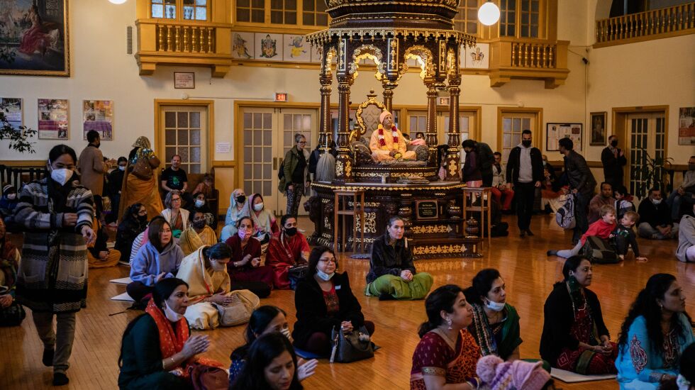Chants of holy names echo through the temple of the International Society for Krishna Consciousness Chicago in Rogers Park on a Sunday as devotees gather for Ram Navami.