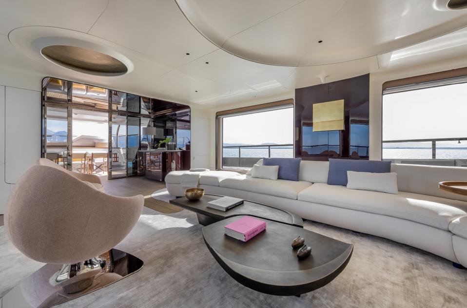 In addition to a brand-new layout, the Grande Trideck also features Azimut’s second generation D2P_Displacement to Planing® hull, designed by P.L. AUSONIO Naval Architecture with Azimut-Benetti R&D. It reportedly combines the comfort of a displacement hull with the performance of a planing hull to improve fuel efficiency. As a result, the innovative hull design allows the yacht to reach high top speeds without needing particularly powerful engines or navigate in displacement mode with a remarkable range at a cost-effective speed.