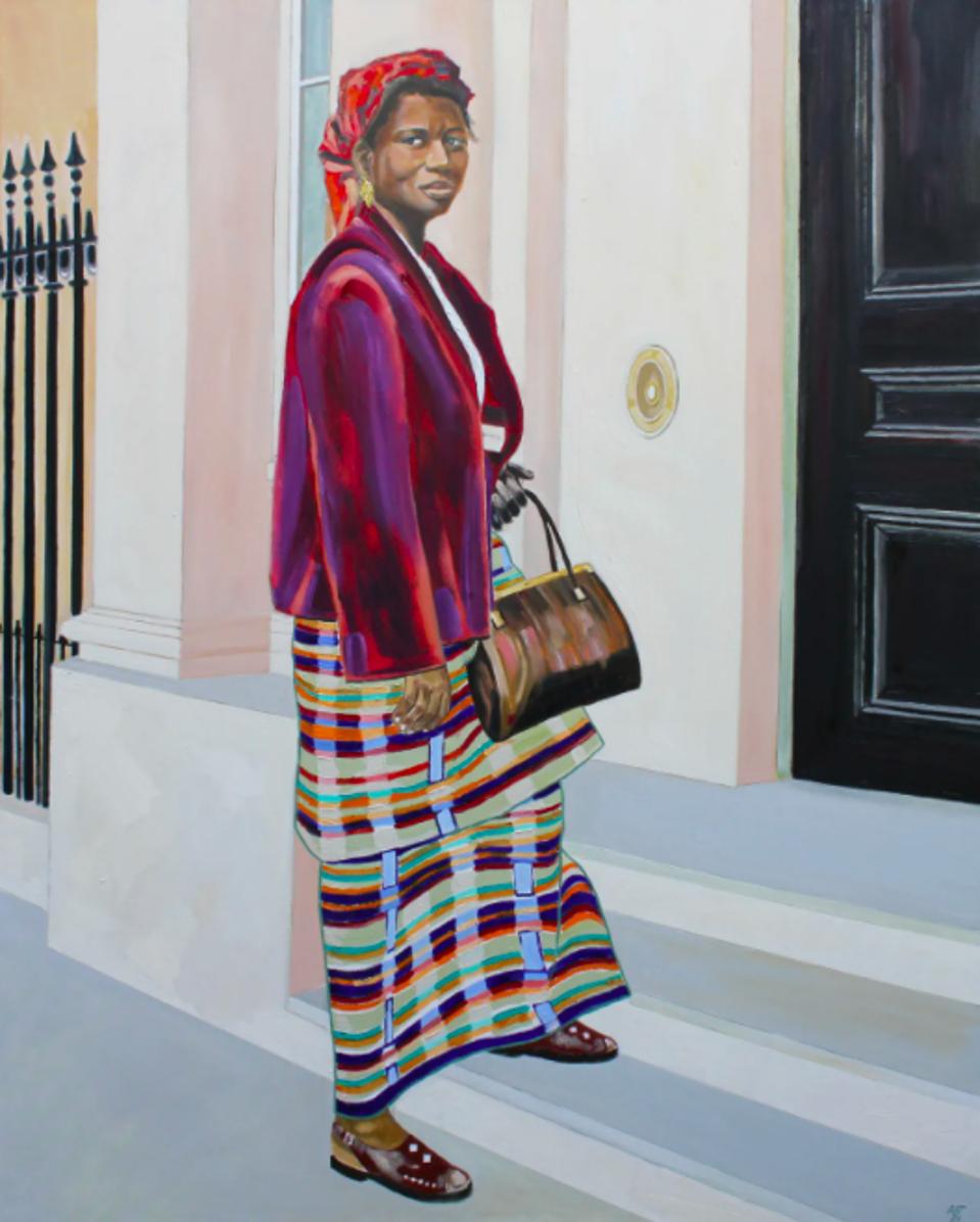 Two women sit on a bed both impeccably dressed in sage green and creamy pink, posing for a portrait. The scene looks innocuous enough, but in their eyes there’s sadness — one of the women has just said goodbye to her son in a rare meeting following her separation from his father. Friends is painted by the protagonists son, artist Arthur Timothy, and is part of the series Grandma’s Hands, which after being exhibited in Ghana’s 1957 Gallery, has led to breakout success for the artist. Centering the often overlooked personal histories of Ghanaian women, Ghanaian-British Timothy puts the female experience centre stage with paintings that feature his mother, the writer and activist Mabel Dove, his stepmother and his aunts. The images are all painted from family photographs taken in the UK and Ghana. “It was a very different time” Timothy says of the mid-century images, “my father was a journalist and editor with a difficult personality and when my parents separated, being apart from us was very hard for my mother.”. Following his exhibition in Ghana, every painting in Grandma's Hands sold out within days to amongst others, celebrity fans, including musicians Swizz Beatz and Jay Z.