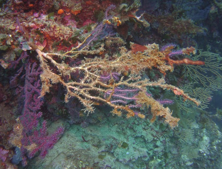 Fishing nets and anchors can tear off the fragile colonies or cause injury (necrosis) to the living tissue covering their horny skeletons. Creatures that live on top of other organisms – known as epibion organisms – then proceed to colonise the beds’ exposed areas, threatening the colony’s survival.