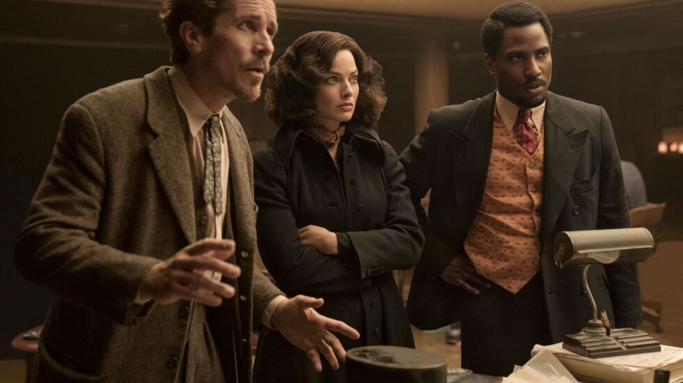 The bulk of “Amsterdam” is set in the New York of 1933, but let’s start with the extended flashback sequence from 15 years prior that establishes the events to come. Christian Bale’s Burt Berendsen, John David Washington’s Harold Woodman and Margot Robbie’s Valerie Voze meet in 1918, as Burt and Harold are recovering from extensive wounds sustained while they were serving together for the 369th Regiment in France in World War I, and Valerie is a nurse who saves all the shrapnel extricated from soldiers and turns it into Surrealist art. (We’re deep in Wes Anderson territory for much of this segment.)