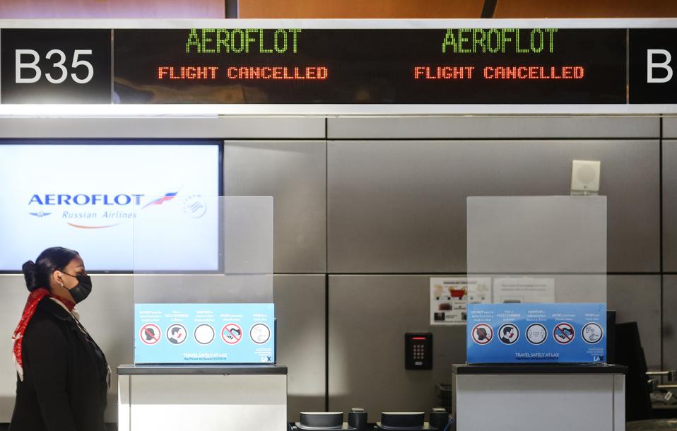 Flights to and from Russia have been cancelled, obviously. But flights from the U.S. or London to Asia now fly much further south to avoid Russian airspace. Flights are longer and burn more fuel, costs that will be passed on to passengers. Meanwhile, polar flights from the U.S. to Asia can no longer use Russia as alternate airports even in case of emergency, according to USA Today.