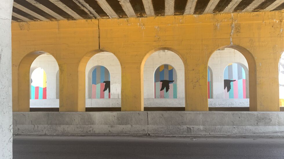 “I made it so in each opening there’s a silhouette of a different bird in flight,” says Jankowiak, who grew up in Back of the Yards and still lives on the Southwest Side. “It looks like a bird is flying with you as you go through the viaduct.”
