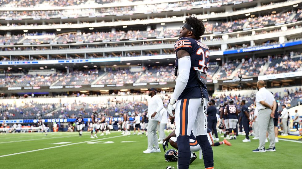 Bears coaches haven’t hesitated to heap praise on rookie cornerback Kyler Gordon. Last week, Eberflus said the second-round pick had been “lighting it up.” Tuesday, Rowe said Gordon has unique short-area movement skills. In fact, Rowe couldn’t think of anyone he’s coached who could match it. The closest might be Colts cornerback Kenny Moore, who made the Pro Bowl last year.