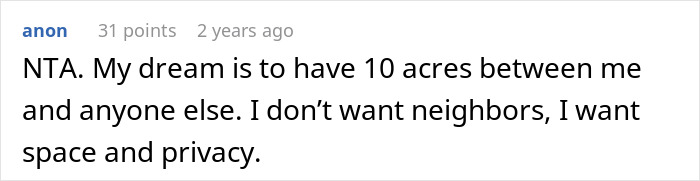 For this redditor, a quiet remote location seemed like the more attractive option, too. That’s why they purchased two lots and made it into one large piece of land, so they have plenty of space. But soon enough the neighbors came asking to use said space, to which the landowner said no – a decision that split the netizens into camps. Scroll down to find the full story below.